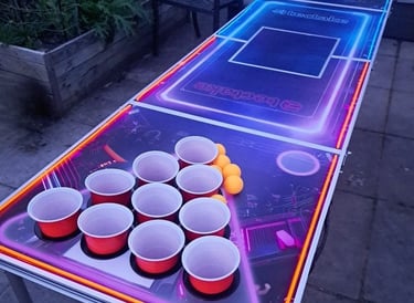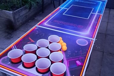 Beer Pong stalas, tai klasikinis vakarėlių žaidimą, kuris garantuotai įtrauks svečius ir sukurs linksmą atmosferą. Beer Pong žaidžiamas dvejomis komandomis po 1-2 žmones. Tikslas – pataikyti į visus priešininkų puodelius.